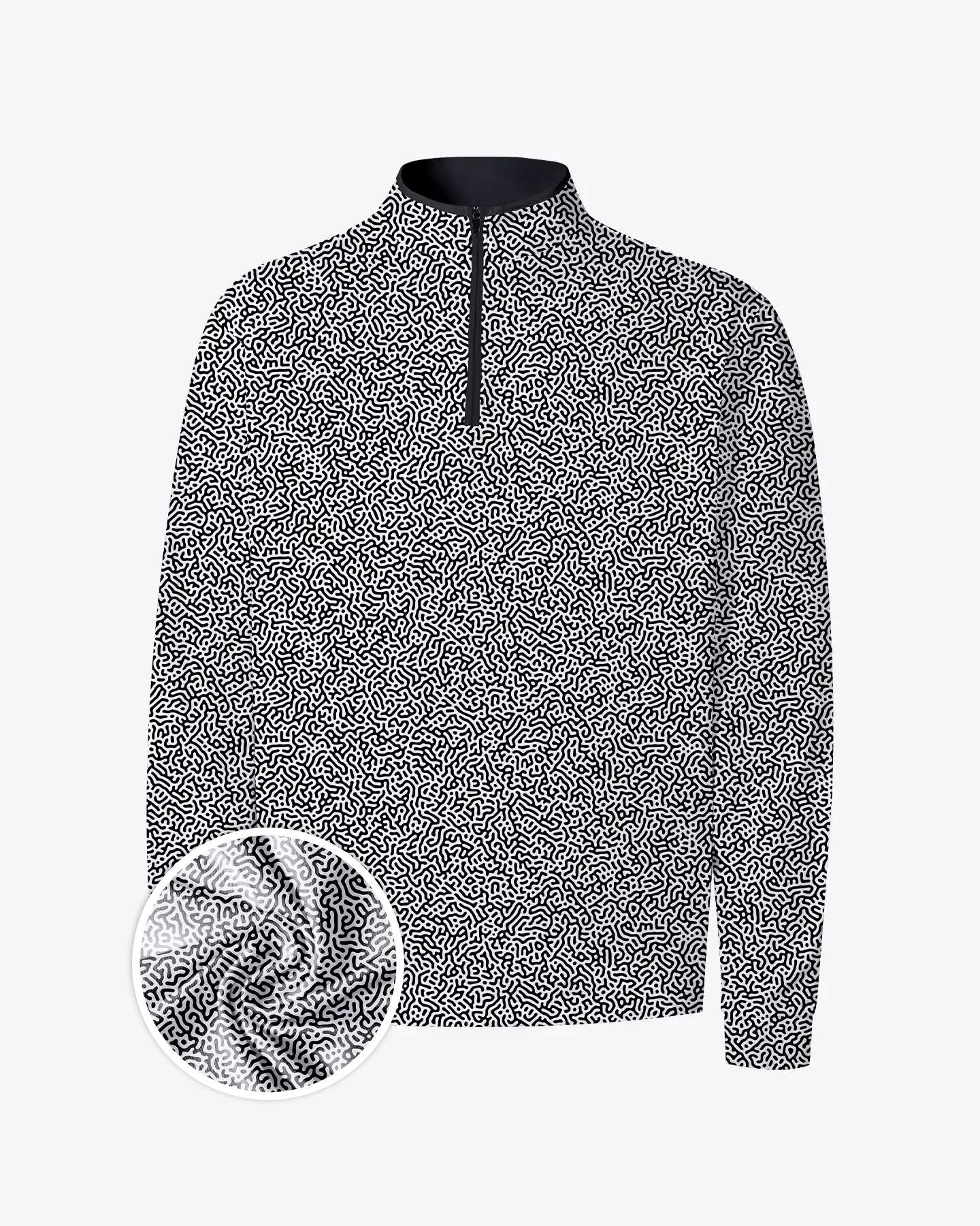 Designed with a bold, maze-like pattern, our high-performance quarter zip pullover not only makes a fashion statement but also serves as a distraction for your opponents on the course. Pair it with our funny golf shirts to make you stand out from the crowd!
